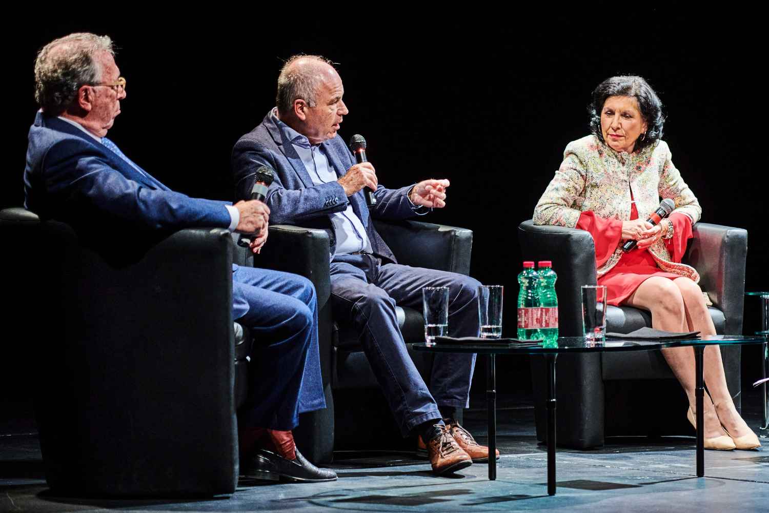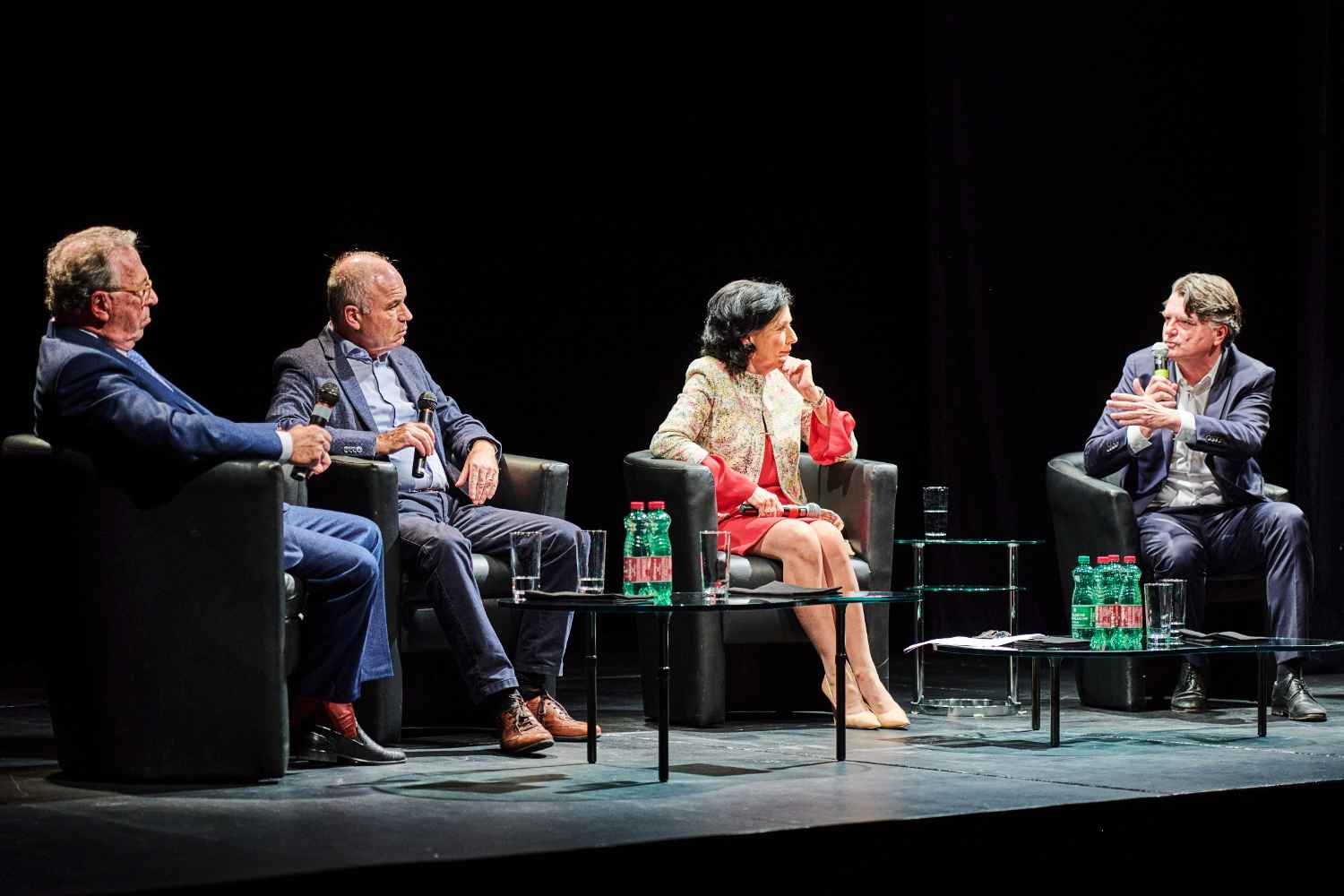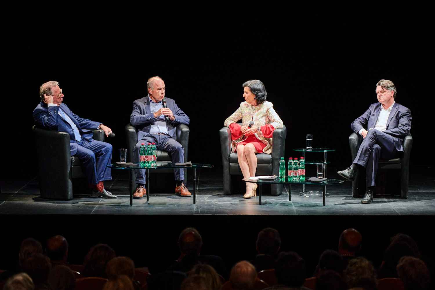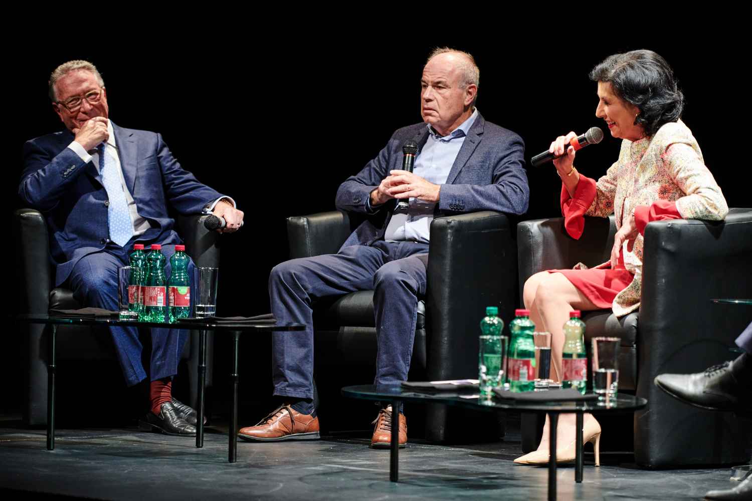 Auf dem Podium: Harry Bergmann, Ahmad Mansour, Doron Rabinovici, Esther Schapira, Robert Schindel, Ben Segenreich und Christian Ultsch. Moderation: Danielle Spera.
