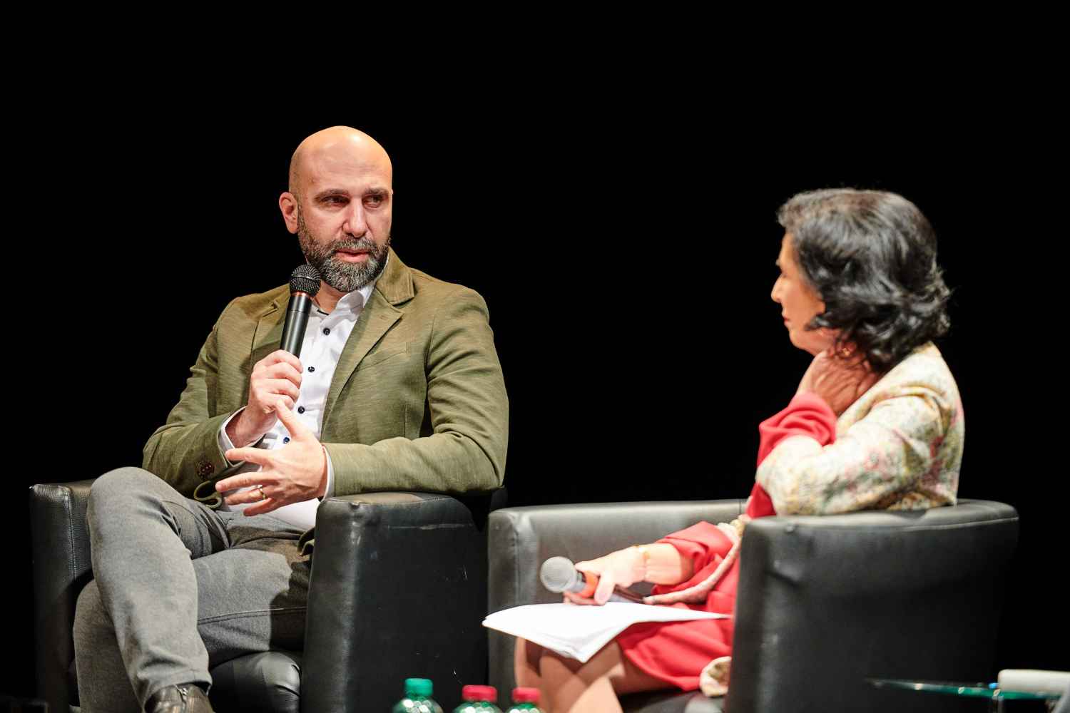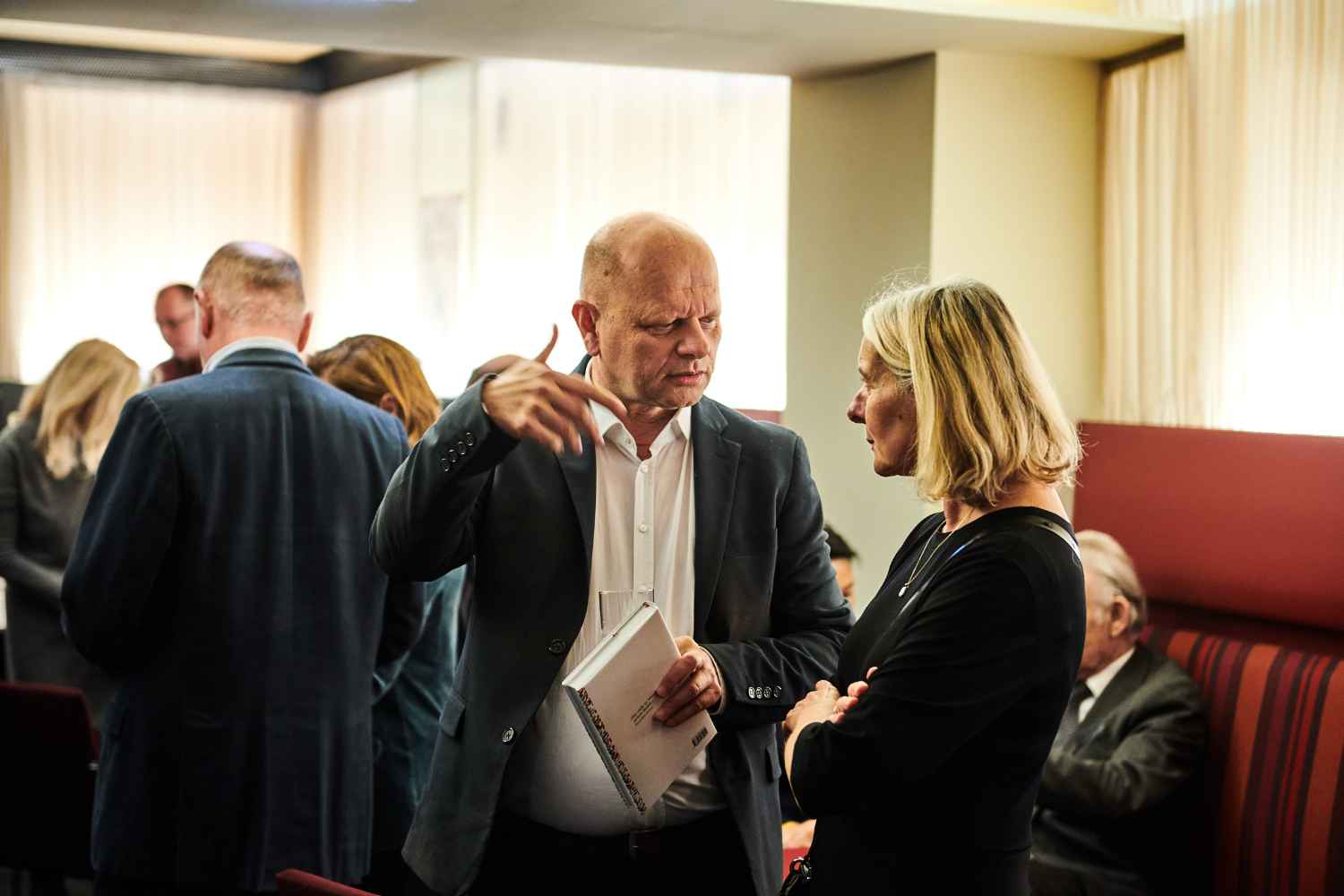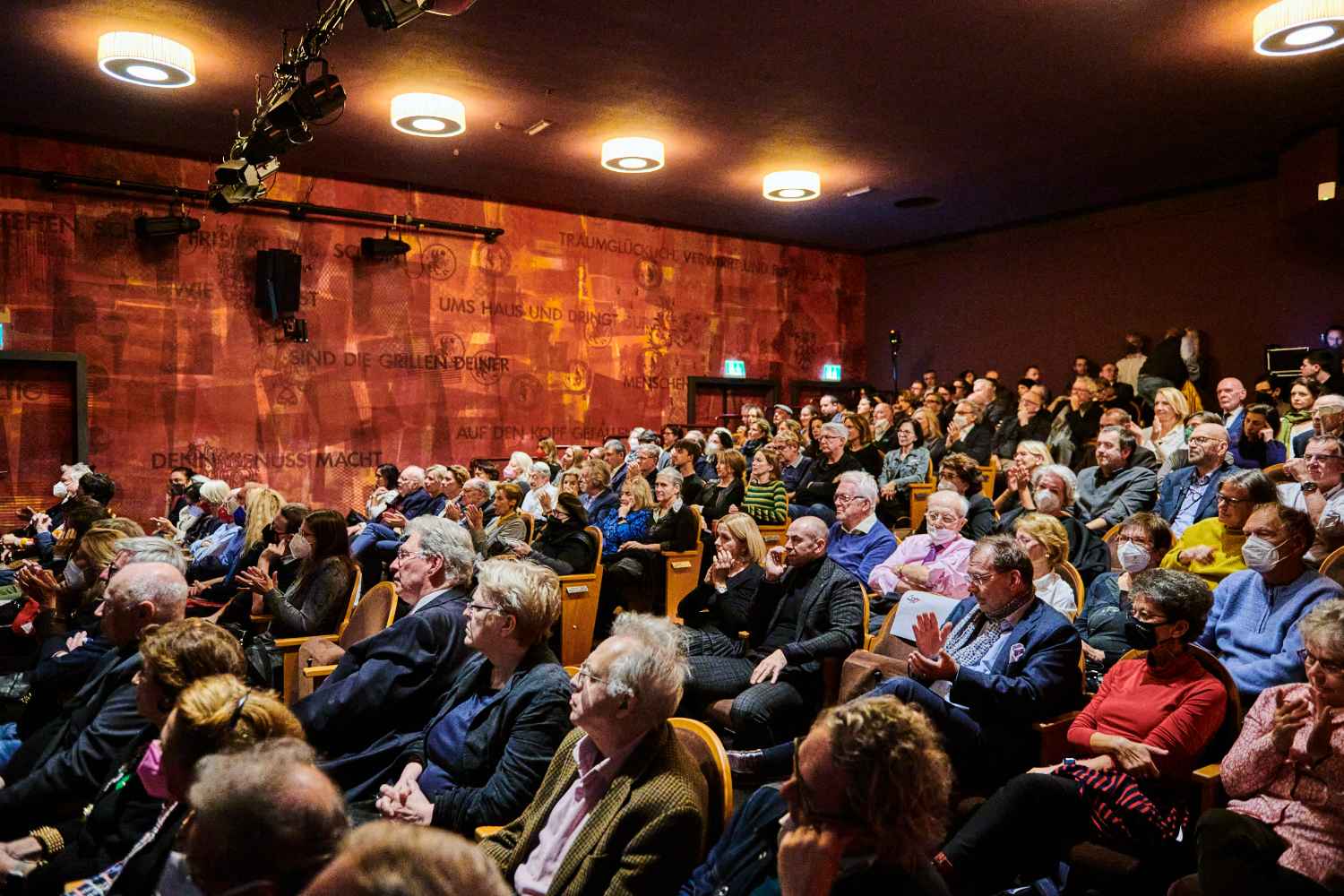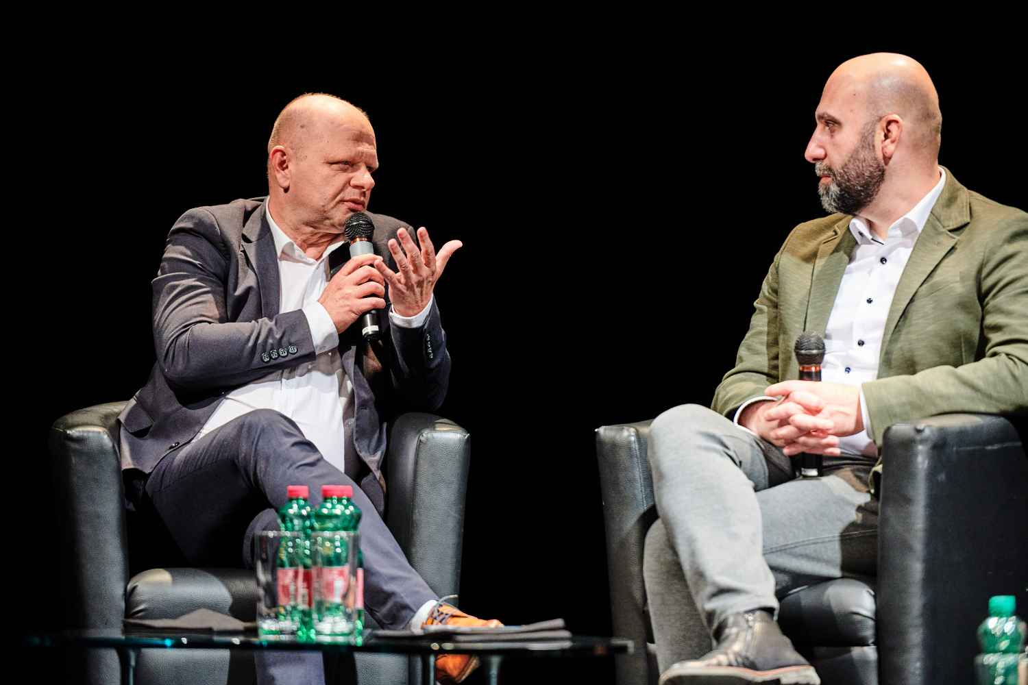 Auf dem Podium: Harry Bergmann, Ahmad Mansour, Doron Rabinovici, Esther Schapira, Robert Schindel, Ben Segenreich und Christian Ultsch. Moderation: Danielle Spera.