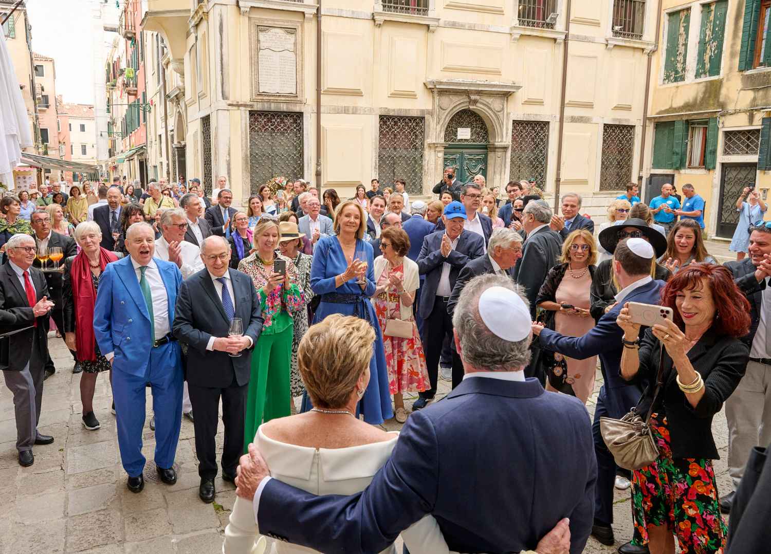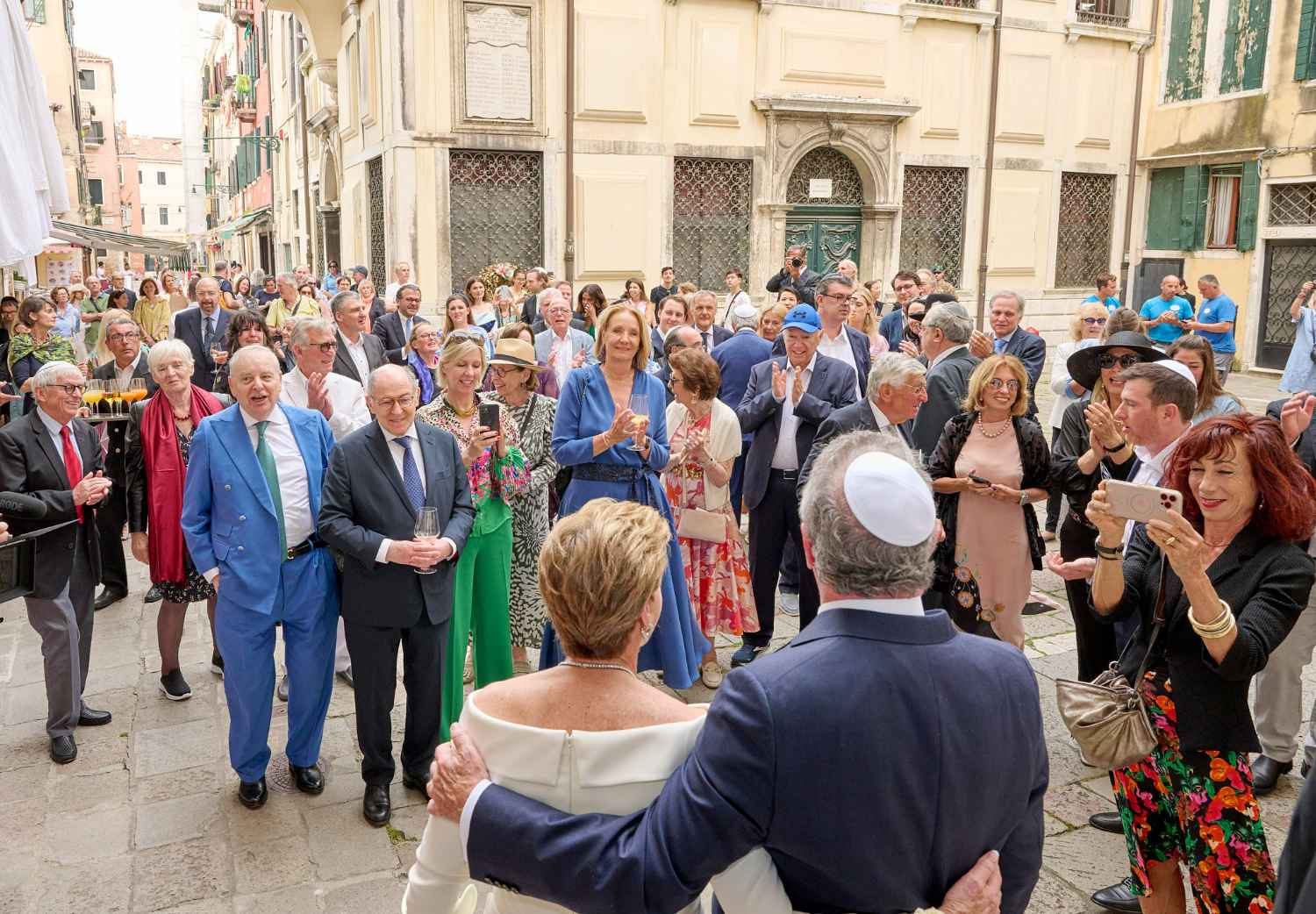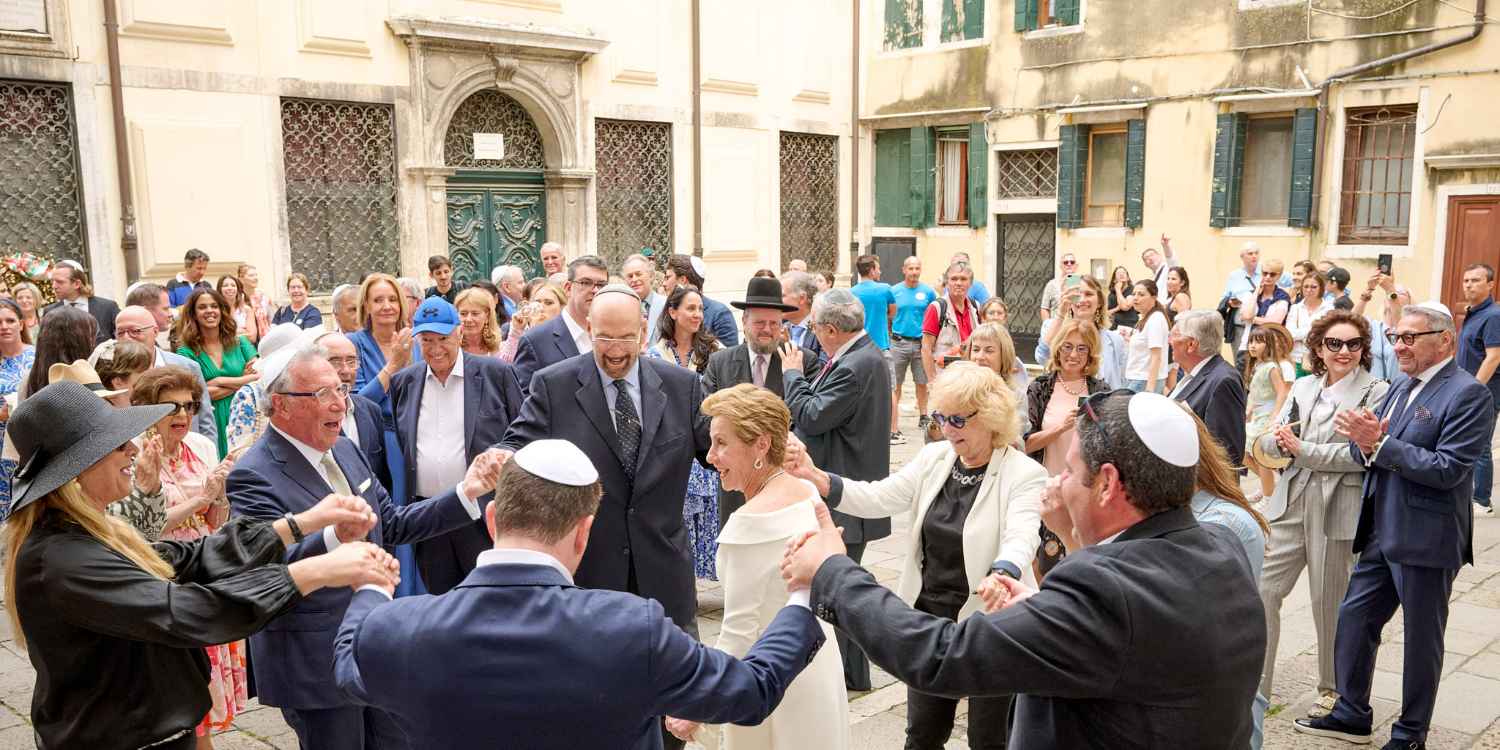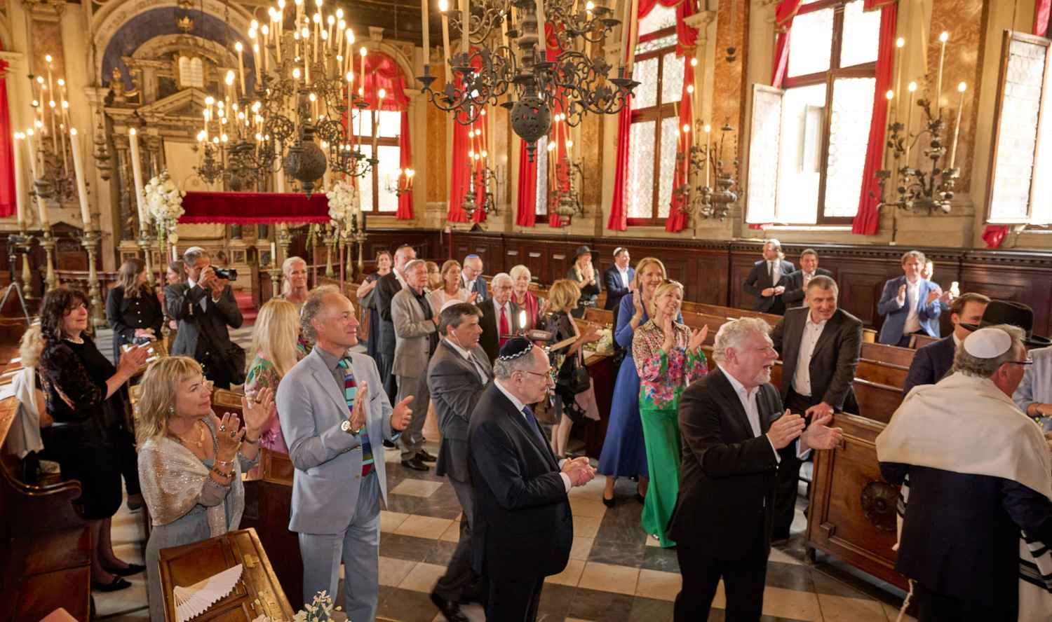 Anita Ammersfeld und Erwin Javor wurden nach 33 Jahren standesamtlicher Ehe in der Spanischen Synagoge im Venediger Ghetto nun auch noch „richtig“ getraut. Das Fest danach fand im eleganten Sala Stucchi im Hotel Excelsior am Lido statt. Eine bunte wie hochkarätige und gut gelaunte Gästeschar aus Israel, Österreich, den USA, Kanada und der Schweiz feierte das Paar ausgelassen, fröhlich und herzlich bis in die frühen Morgenstunden.