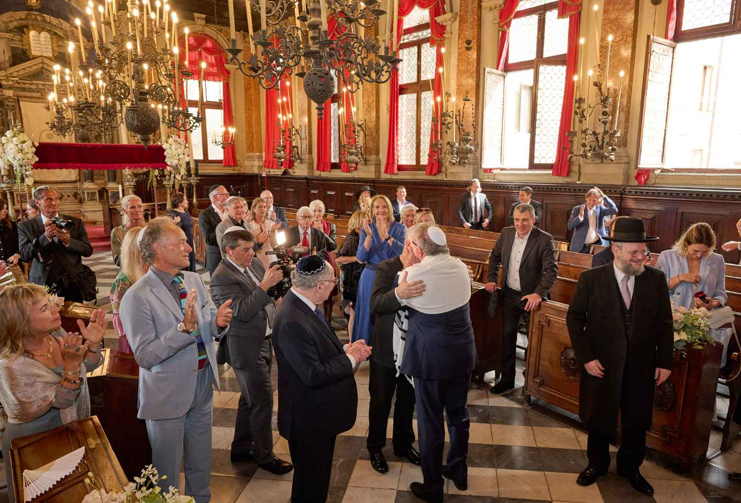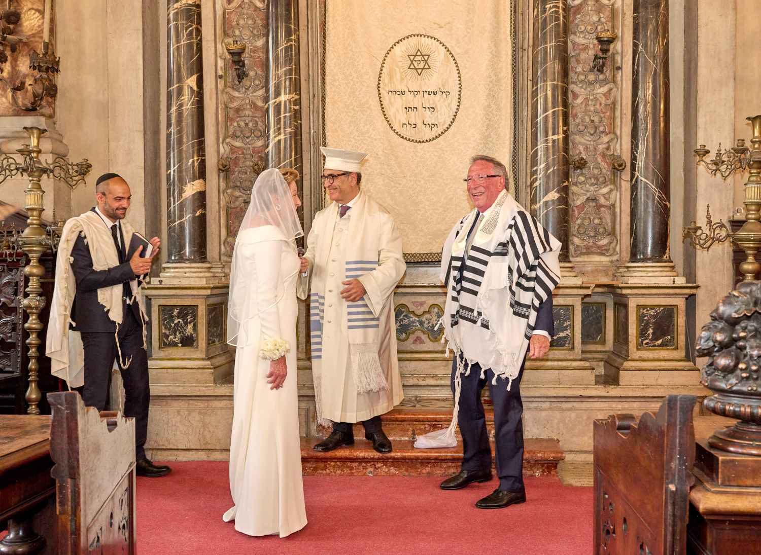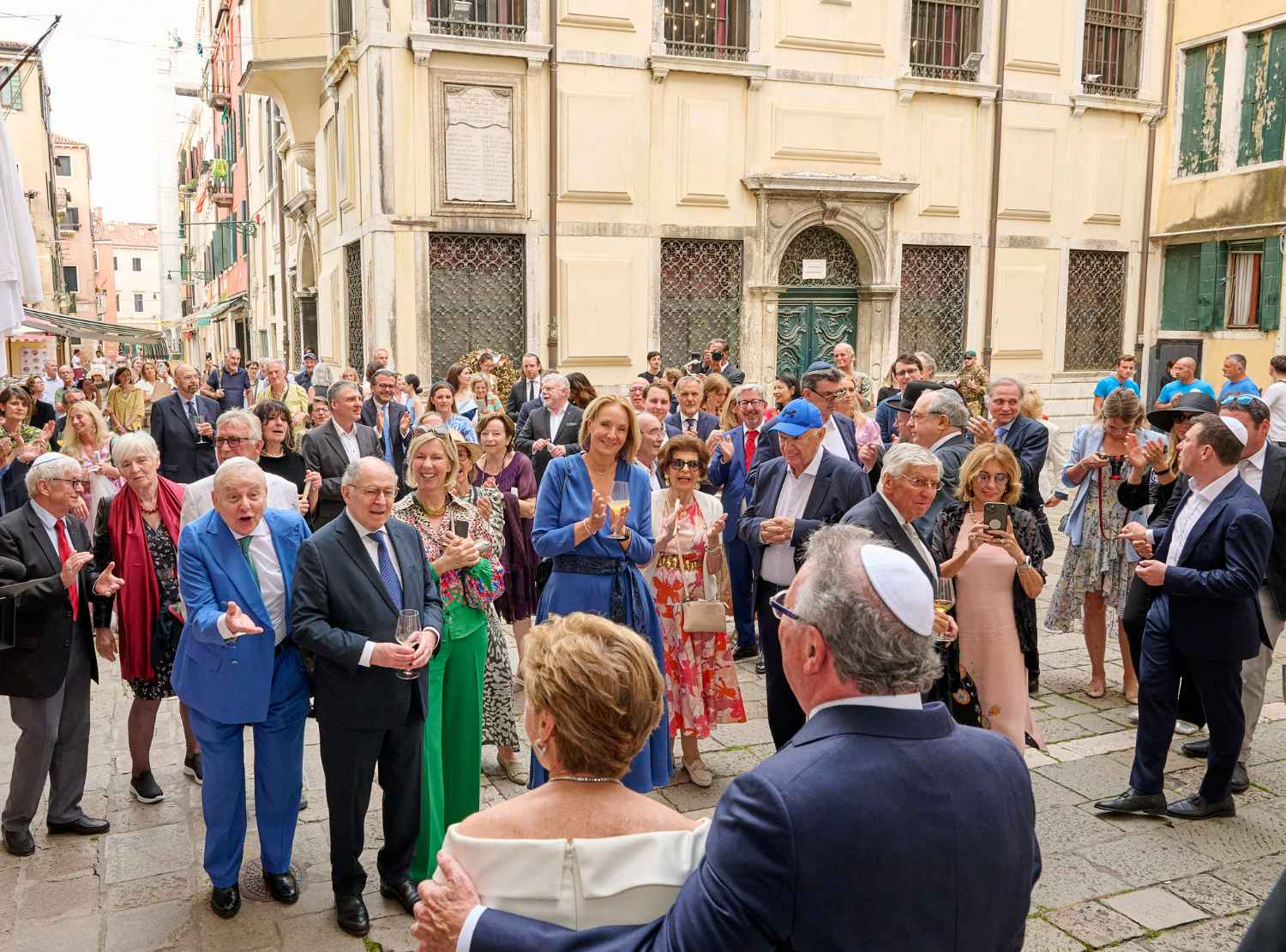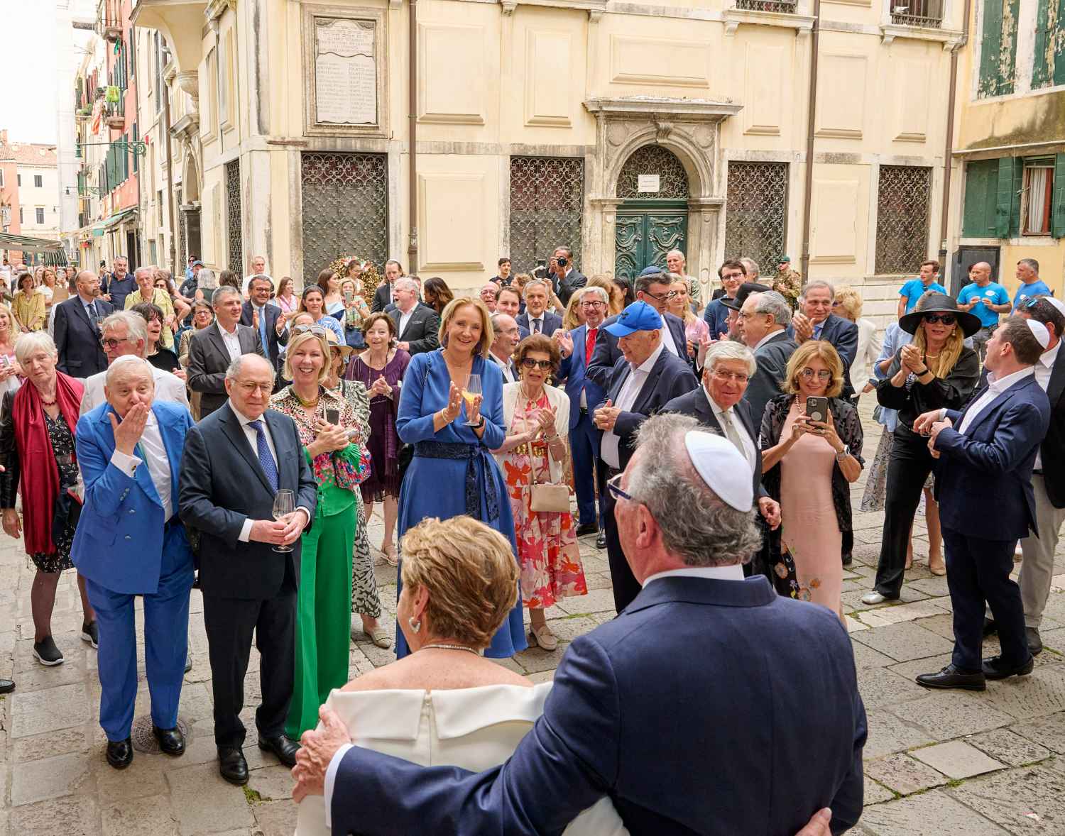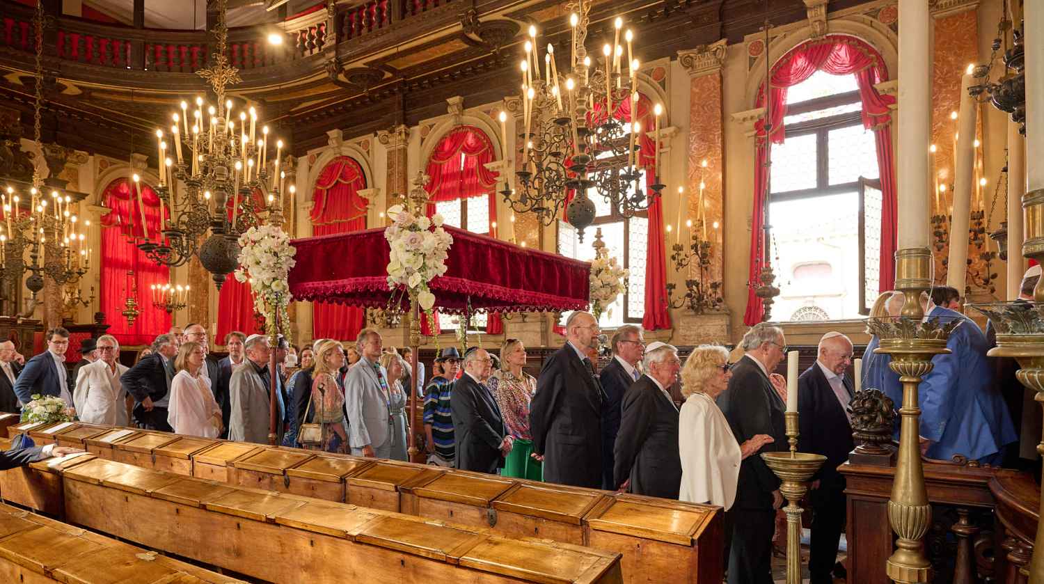 Anita Ammersfeld und Erwin Javor wurden nach 33 Jahren standesamtlicher Ehe in der Spanischen Synagoge im Venediger Ghetto nun auch noch „richtig“ getraut. Das Fest danach fand im eleganten Sala Stucchi im Hotel Excelsior am Lido statt. Eine bunte wie hochkarätige und gut gelaunte Gästeschar aus Israel, Österreich, den USA, Kanada und der Schweiz feierte das Paar ausgelassen, fröhlich und herzlich bis in die frühen Morgenstunden.