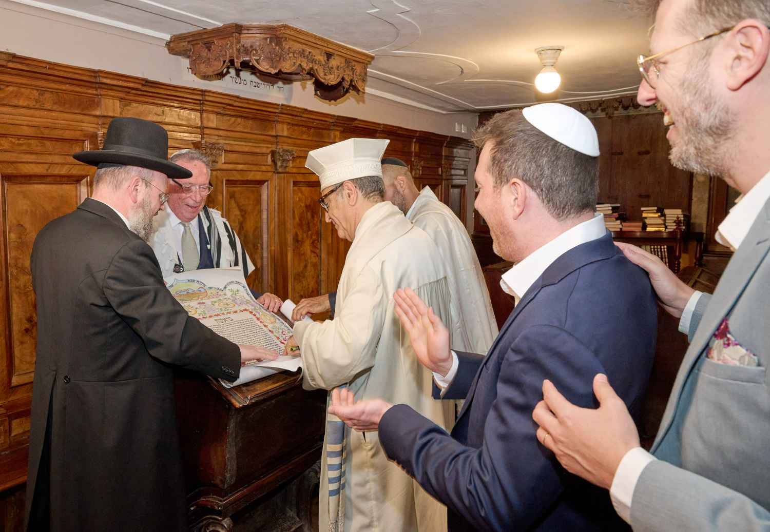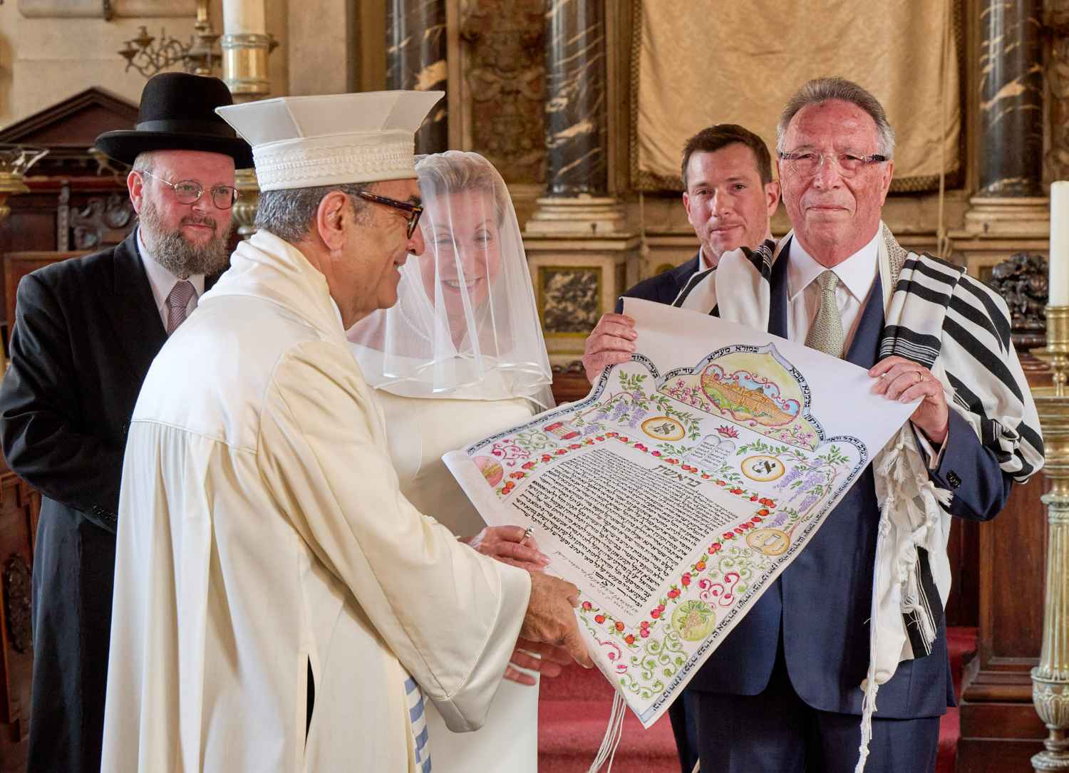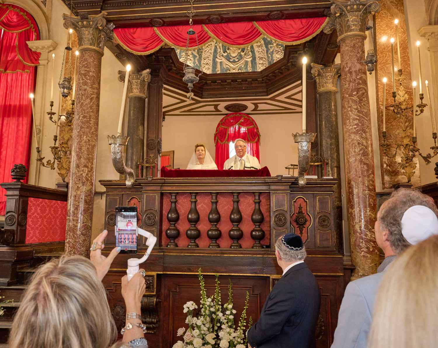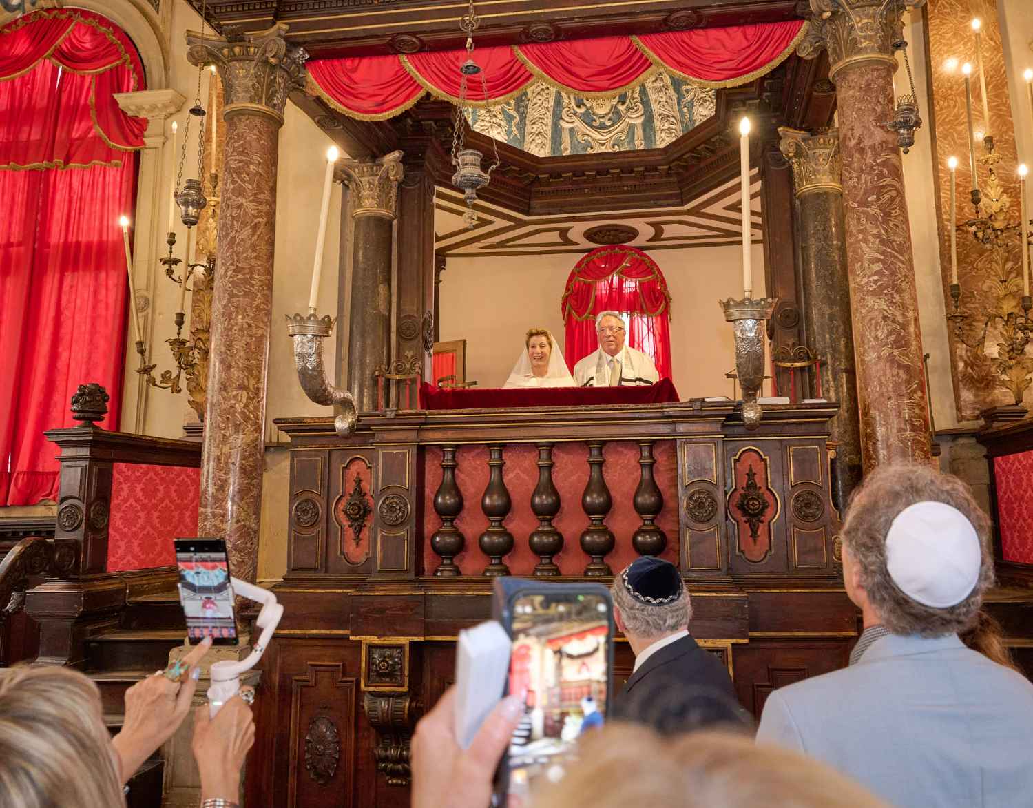 Anita Ammersfeld und Erwin Javor wurden nach 33 Jahren standesamtlicher Ehe in der Spanischen Synagoge im Venediger Ghetto nun auch noch „richtig“ getraut. Das Fest danach fand im eleganten Sala Stucchi im Hotel Excelsior am Lido statt. Eine bunte wie hochkarätige und gut gelaunte Gästeschar aus Israel, Österreich, den USA, Kanada und der Schweiz feierte das Paar ausgelassen, fröhlich und herzlich bis in die frühen Morgenstunden.