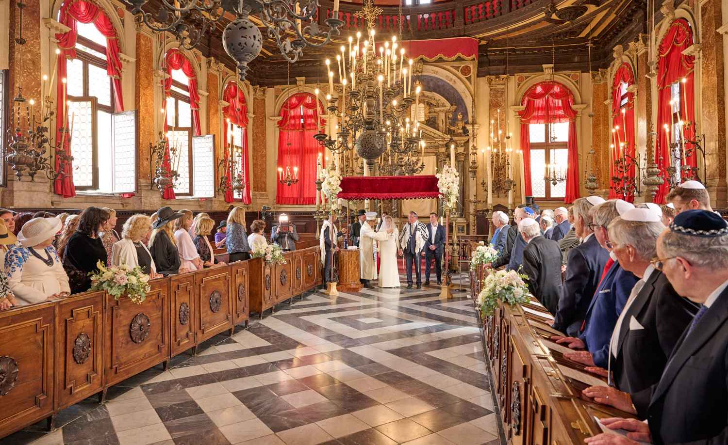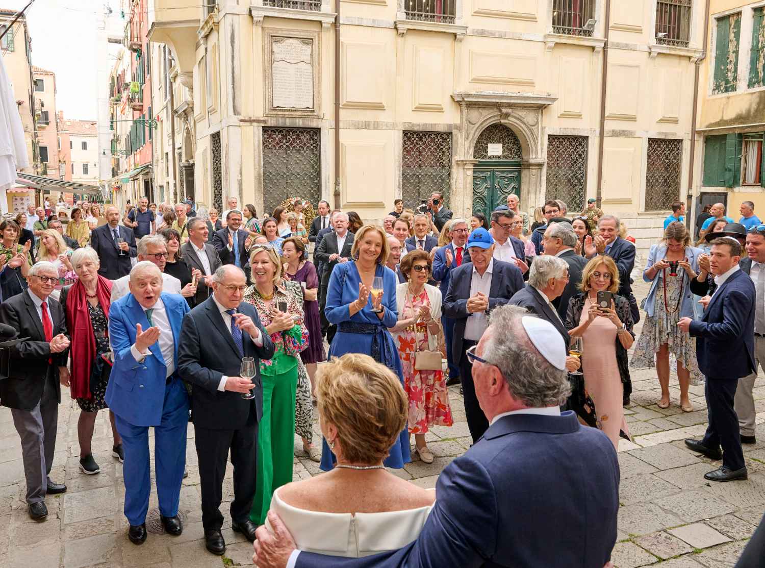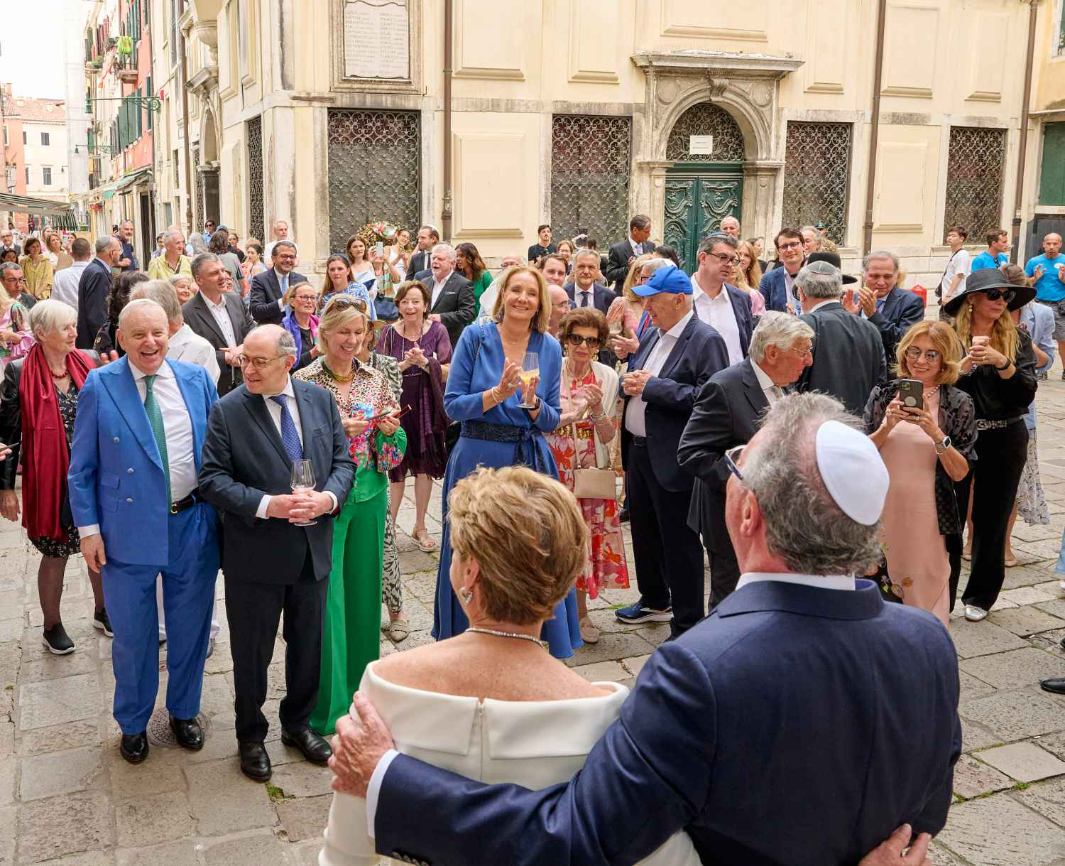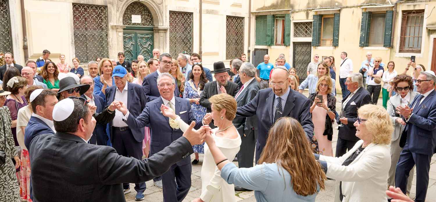 Anita Ammersfeld und Erwin Javor wurden nach 33 Jahren standesamtlicher Ehe in der Spanischen Synagoge im Venediger Ghetto nun auch noch „richtig“ getraut. Das Fest danach fand im eleganten Sala Stucchi im Hotel Excelsior am Lido statt. Eine bunte wie hochkarätige und gut gelaunte Gästeschar aus Israel, Österreich, den USA, Kanada und der Schweiz feierte das Paar ausgelassen, fröhlich und herzlich bis in die frühen Morgenstunden.