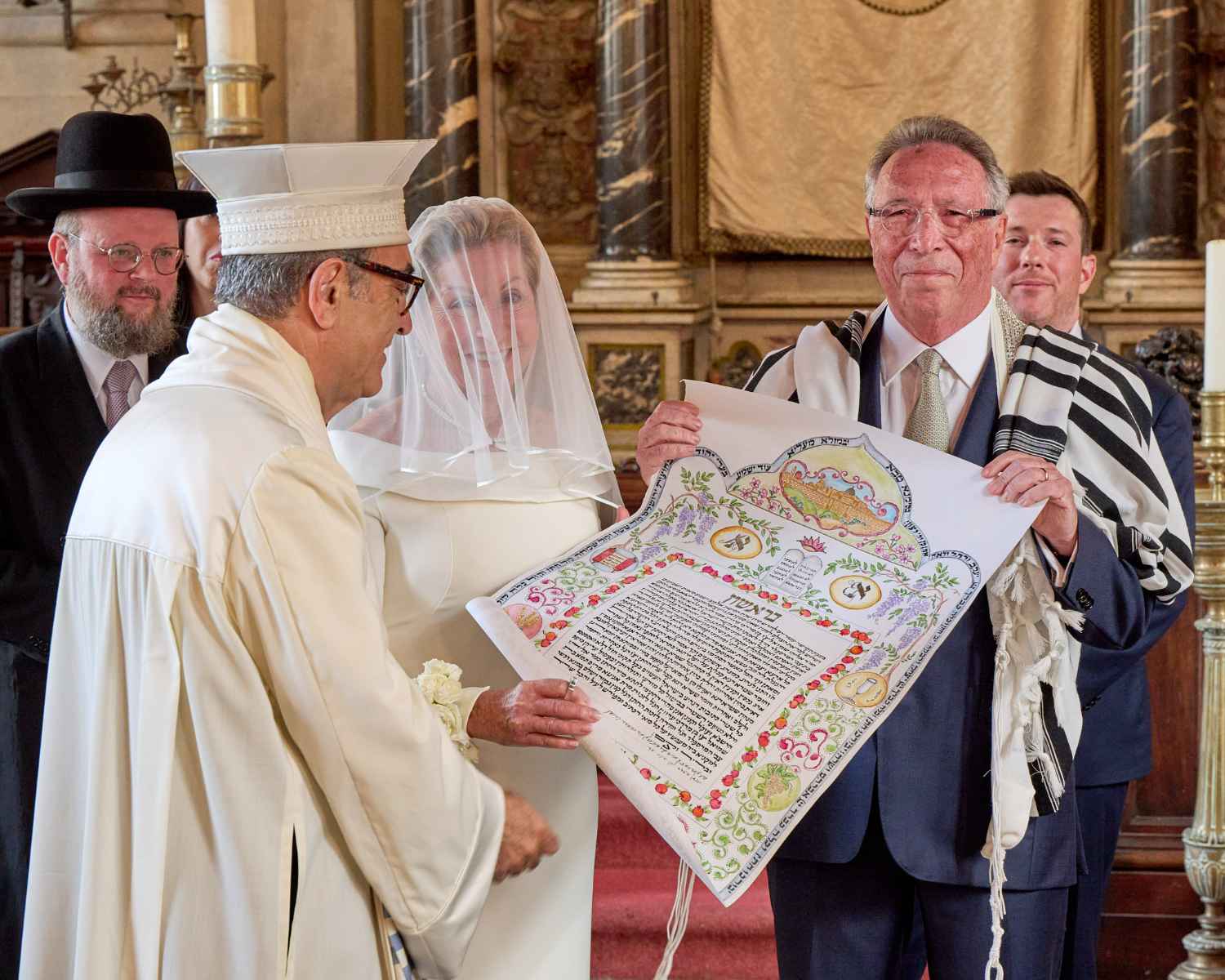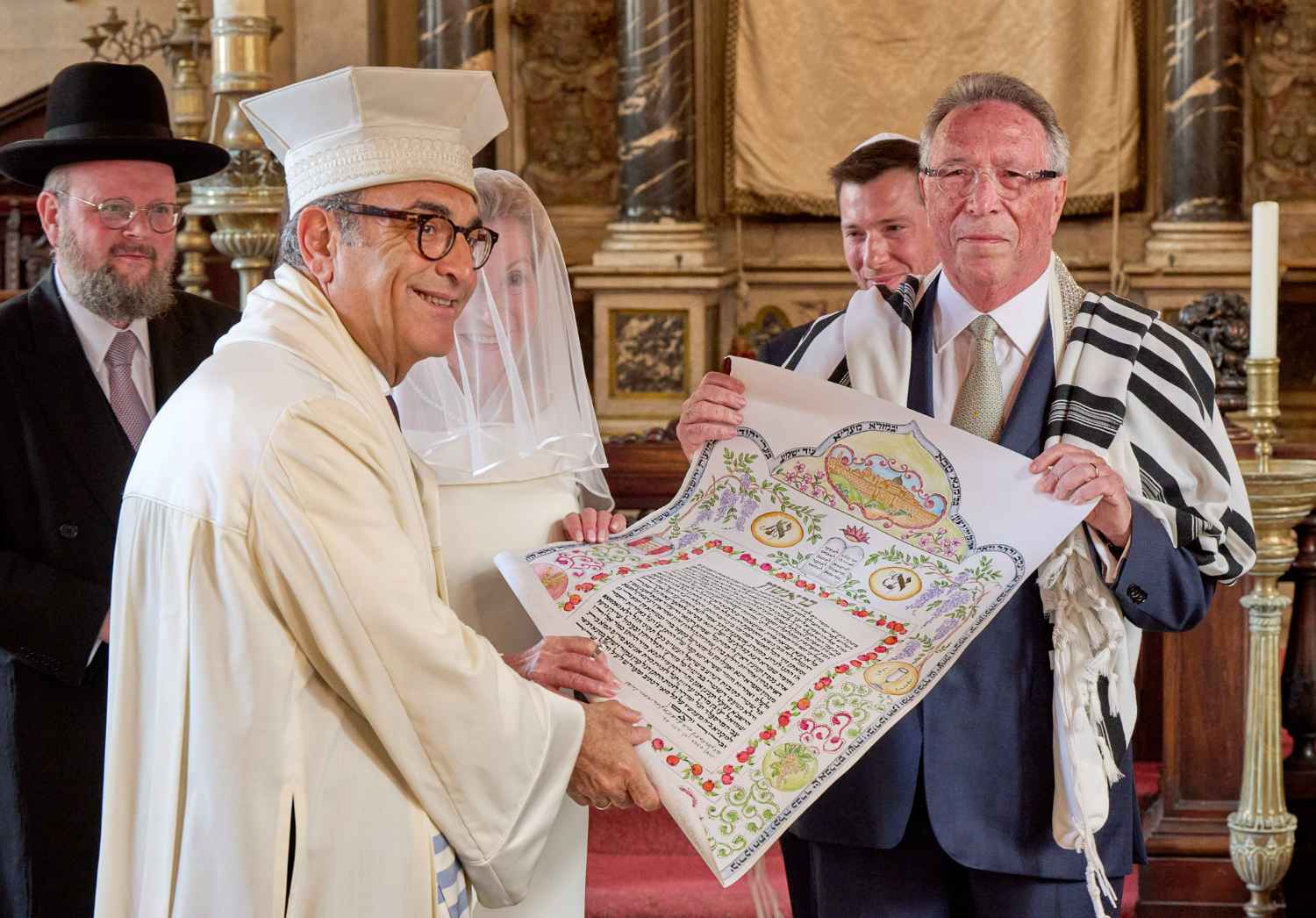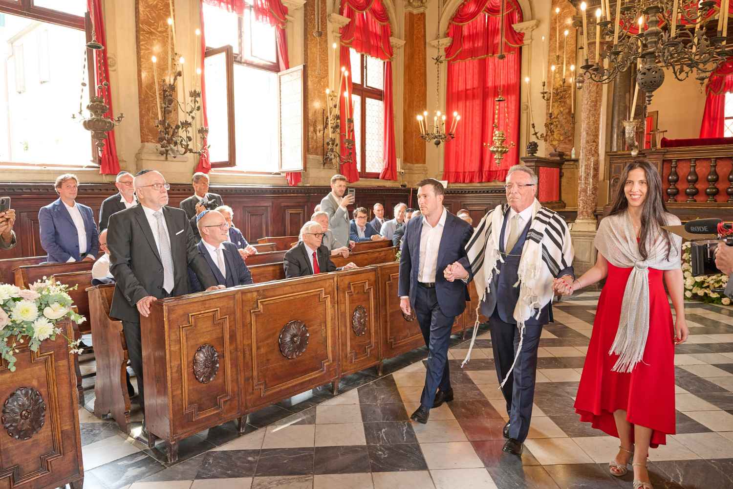 Anita Ammersfeld und Erwin Javor wurden nach 33 Jahren standesamtlicher Ehe in der Spanischen Synagoge im Venediger Ghetto nun auch noch „richtig“ getraut. Das Fest danach fand im eleganten Sala Stucchi im Hotel Excelsior am Lido statt. Eine bunte wie hochkarätige und gut gelaunte Gästeschar aus Israel, Österreich, den USA, Kanada und der Schweiz feierte das Paar ausgelassen, fröhlich und herzlich bis in die frühen Morgenstunden.