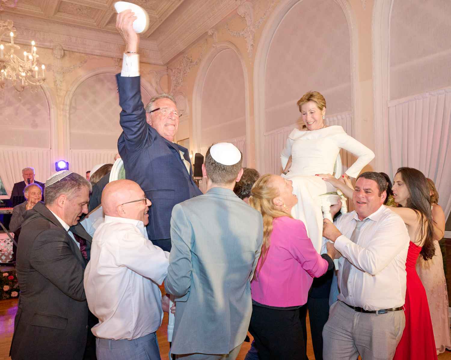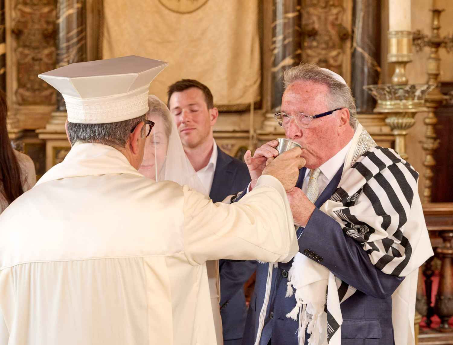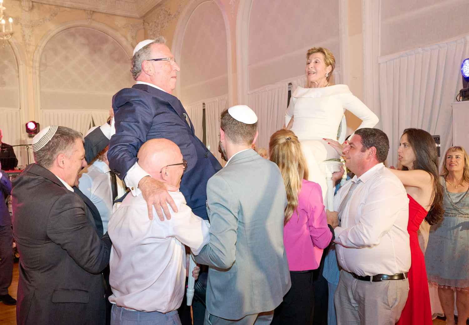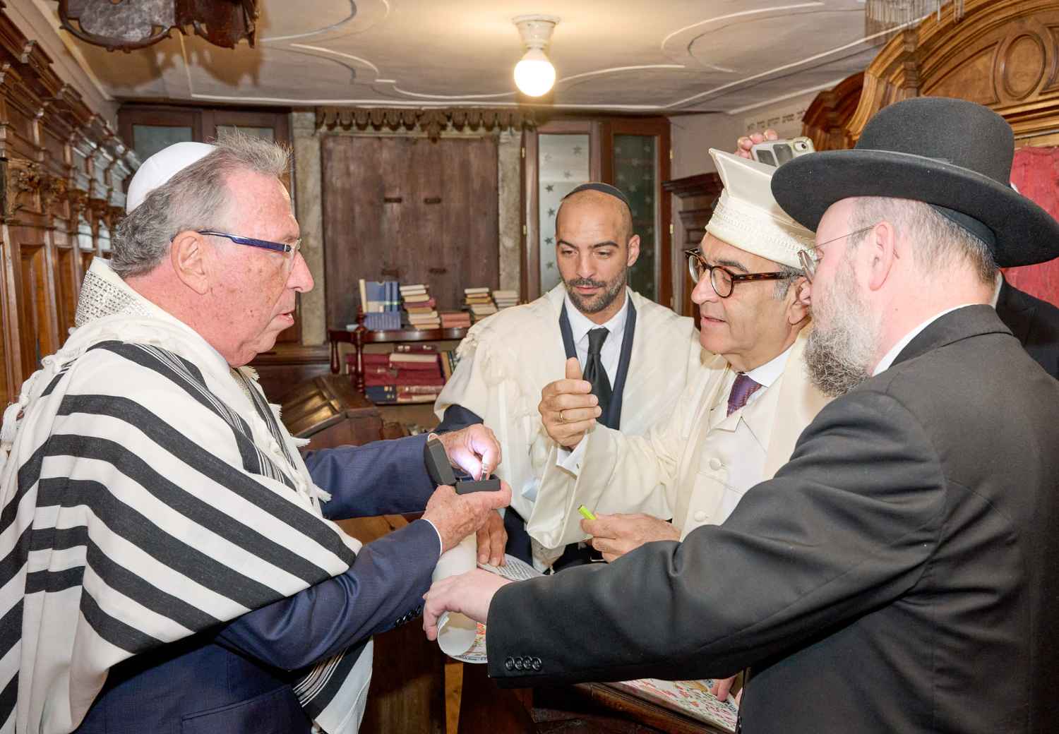 Anita Ammersfeld und Erwin Javor wurden nach 33 Jahren standesamtlicher Ehe in der Spanischen Synagoge im Venediger Ghetto nun auch noch „richtig“ getraut. Das Fest danach fand im eleganten Sala Stucchi im Hotel Excelsior am Lido statt. Eine bunte wie hochkarätige und gut gelaunte Gästeschar aus Israel, Österreich, den USA, Kanada und der Schweiz feierte das Paar ausgelassen, fröhlich und herzlich bis in die frühen Morgenstunden.